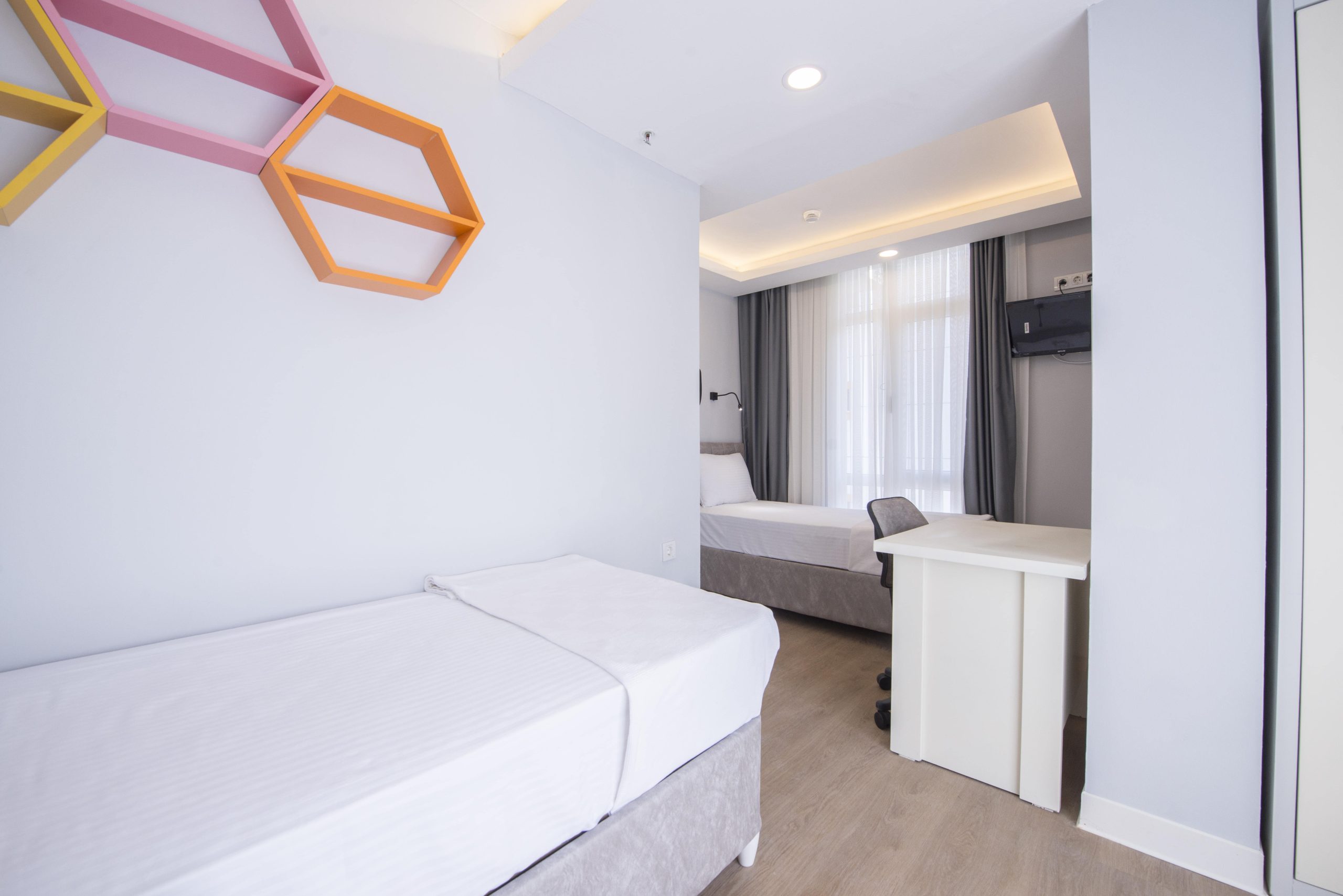 Dört kişilik odalarımız, güçlü bir sosyal bağ kurmak isteyen öğrencilerimiz için ideal bir yaşam alanı sunar.